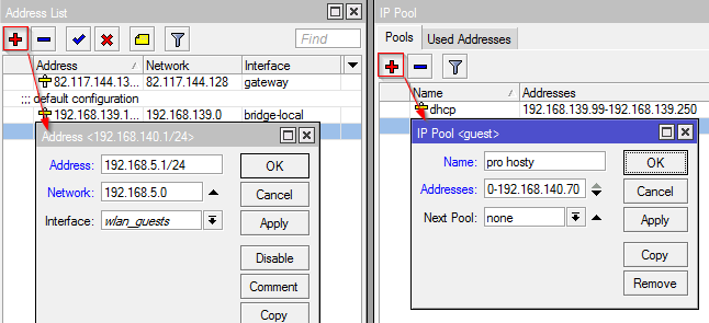 Address Pool: vybereme nově vytvořený pool pro hosty