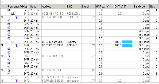 Asi budu za pitomce, ale netuším pořádně, co znamenají jednotlivé grafické symboly a jak chápat hodnoty v tabulce (signal, of frequency/traffic, bandwidth). Proč jsou některé zašedlé.