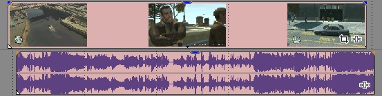 Video soubor se po umístění na časovou osu rozdělí na video stopu (Video) a zvukovou stopu (Voice) a vytvoří tak dva jednolité bloky. Zvukové soubory se vkládají do zvukových stop (defaultně Music a Sound Effects).