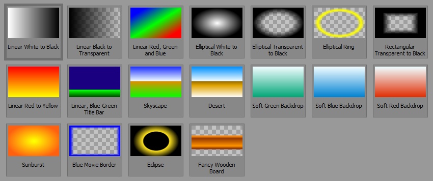 Color Gradient – průhledné, nebo neprůhledné barevné přechody. Mohou posloužit např. jako pozadí, nebo zvýraznění určitého místa obrazu.