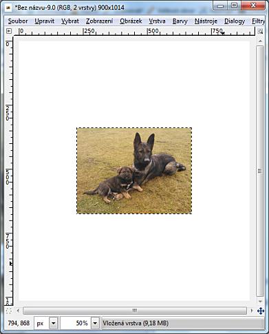 Z těchto rozměrů a počtu snímků vypočítáme velikost plátna nového výsledného obrázku: při plánu vložení šesti obrázků bude velikost plátna 900 x 1014 px (ano, je to jiný pes, ale princip je myslím jasný, že ;-))