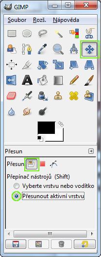 Přepneme nástroj na přesun a vložený obrázek přešoupneme do levého horního rohu.