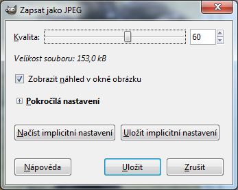 Zde si můžeme navolit kvalitu obrázku, potažmo jeho výslednou velikost po zatržení volby Zobrazit náhled v okně obrázku.
