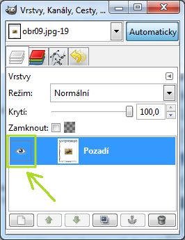 Pokud tvůrce obrázku zajímalo, co se stane po kliknutí na "očičko" na vrstvě a zapomněl ho znovu zobrazit, při slučování vrstev se takto vypnutá vrstva nepřidá a ve výsledném obrázku nebude vidět: