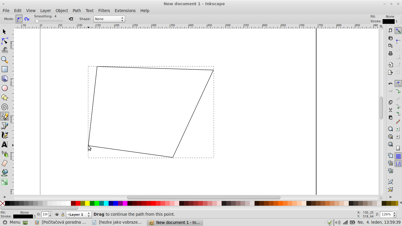 Nějaký ten vektor si namalujeme v Inkscape. Nějaký ošklivý čtyřúhelník.