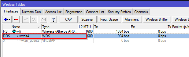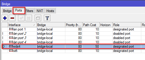 Stejný postup zopakujte i na dalších routerech. Po provedení dojde k vytvoření WDS podřízených interface a v bridge k vytvoření WDS portů - tohle už si Mikrotiky zařídí samy (viz následující obrázky):