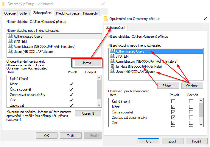 Nastavení oprávnění ve Windows