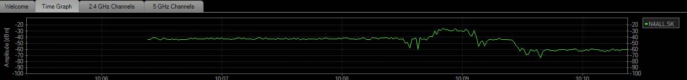 Na tomto obrázku vidíme silu signaálu a jeho stabilitu. V izbe, kde je AP má nb signál na na úrovni -30dBm, vo vzdialenosti 5m a jednej steny v ceste veľmi slušných -40dBm a cez 9m a dve steny -60dBm čo sú veľmi dobré hodnoty.
