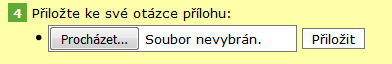 Klikněte na "Procházet" a najděte na disku soubor, který chce k dotazu vložit. Následně klikněte na "Přiložit". Vložený soubor je následně znázorněn ve formě přílohy, viz obrázek: