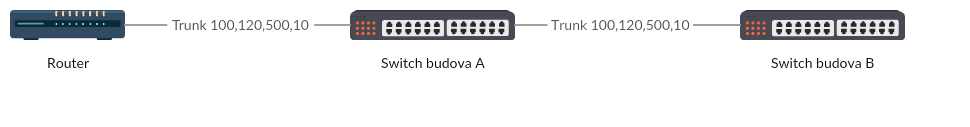 - zařízení připojená k Trunk portu "musí vědět," že v síti jsou nasazeny VLANy, a tedy musí tagovat. Switch pouze kontroluje, zda tagy v paketech odpovídají nakonfigurovaným tagům na portu switche.