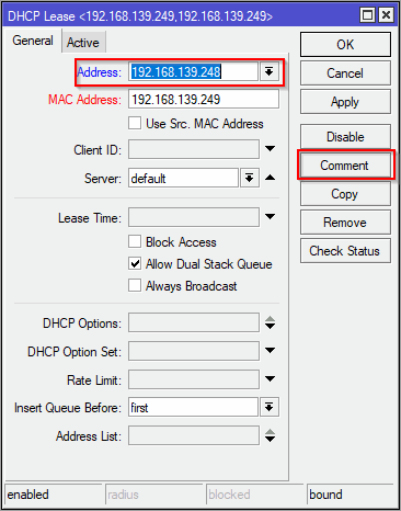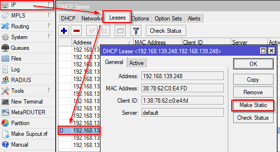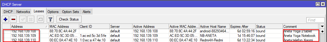 Půjdeme přes menu IP / DHCP na záložku Leases.