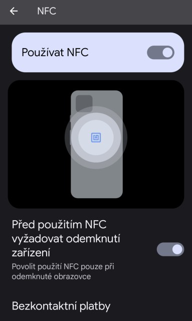 Když už jsme v tom nastavení mobilních plateb, doporučuji zapnout volbu před použitím NFC vyžadovat odemknutí telefonu (viz první obrázek). Tím zabráníte tomu, že vás nikdo nezinkasuje v tlačenici nebo nebude moct platit vaším telefonem, když jej ztratíte nebo vám bude ukraden.