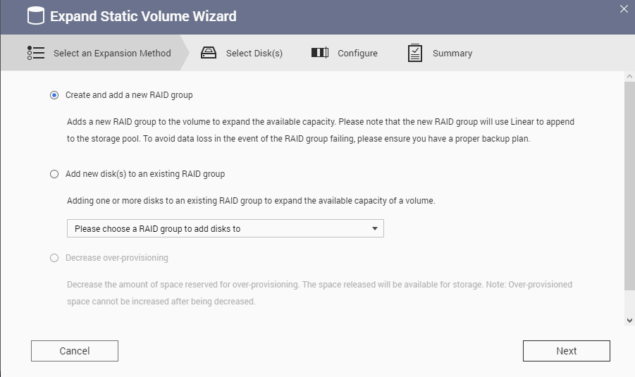 Zkus se podívat na verzi qts 5.1.0 - https://www.youtube.com/watch?v=6Nb_VKq-nS8 je tam přepracovaná správa disků - sice asi jde o jen "dashvoard přehledu" ale viděl jsem tam i novou obrazovku wizardu