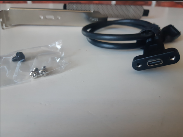 [Review : Adaptérový kabel USB-C pro přední panel. USB-C samice na 20pinový USB typ E A-Key samec s držákem PCI]