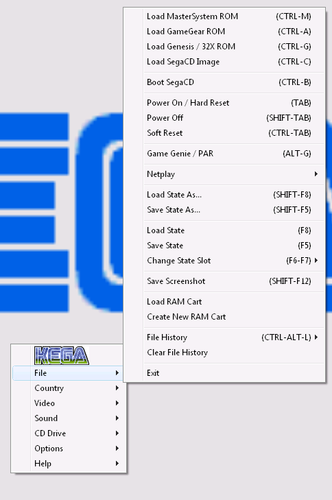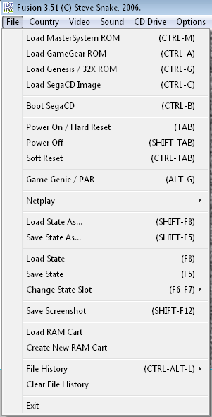 Pro načtení obrazů her do Sega-Mega drive se používá položka File - Load Genesis/32x ROM