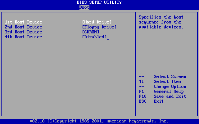 1st Boot Device 1st FLOPPY DRIVE