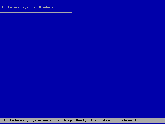 8a. Následně modrá obrazovka (ne BSOD), kde dole v šedém pruhu se zobrazují jednotlivé komponenty systému, které jsou nutné pro načtení.
