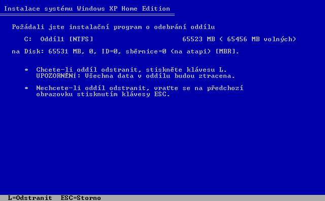 13. Stiskněte D=Odstranit oddíl