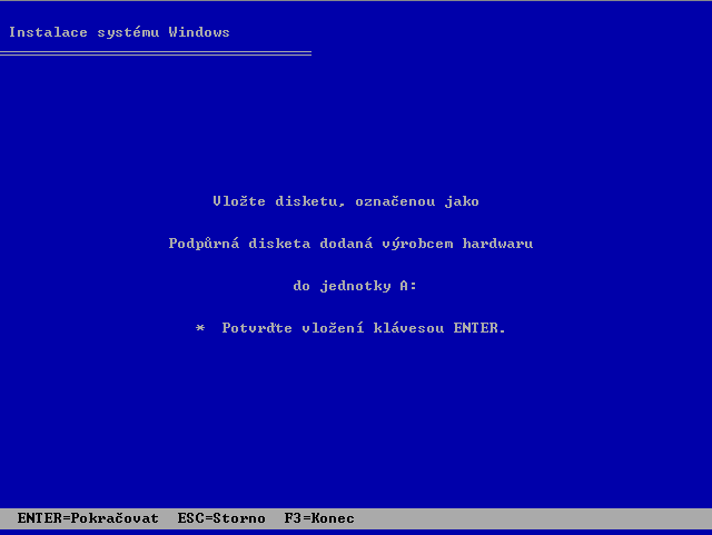 8b4 Vložte instalační disketu, stiskněte enter, vyberte ovladače pro instalaci, potvrďte: