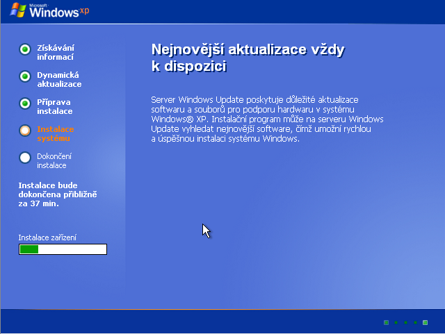 36. Jak je vidět u průběhu, instalace se už dokončuje: