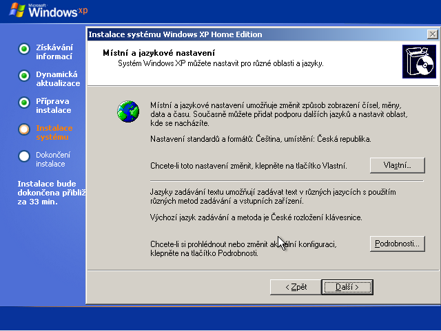 33. Zkontrolujeme časové pásmo, datum a čas a opět klikneme na Další :-)