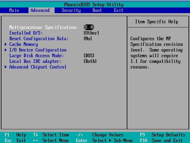 Reset Configuration Data - pokud jste měnili hardware, zvolte tuto možnost pro vymazání všech dat ohledně konfigurace hardware