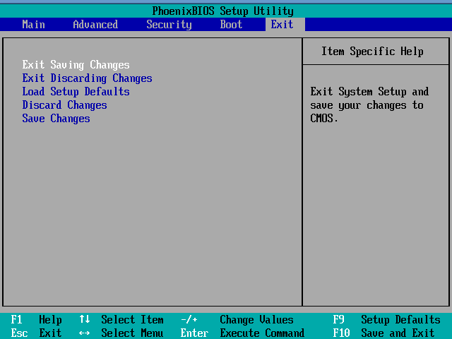 Exit discarding changes - NEuloží změny a opustí BIOS