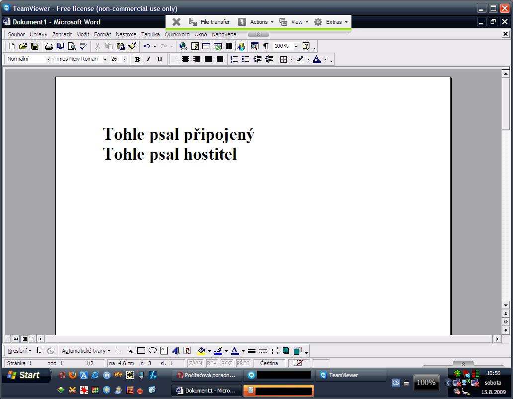 Program Teamviewer jsem objevil asi před půl rokem. Je to vynikající pomůcka, když se potřebujete dostat někomu na PC a celkově ho ovládat. Třeba když někomu něco nejde a on to nedokáže udělat sám pomocí instrukcí nebo vyskakuje nějaká chybová hláška a ani vy si nevíte na dálku rady. S tímto programem je možné vzdálený PC ovládat, vypínat či restartovat. Program je ve free verzi omezen pouze na několik desítek různých ID, což by mělo běžnému uživateli stačit bohatě.