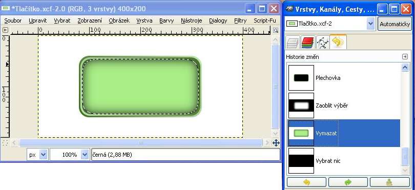 Dostaneme tento obrázek (je vhodné si dosavadní výtvor pojmenovat a uložit v nativním gimpím formátu XCF, kterýžto zachová veškeré použité vrstvy, výběry apod.)