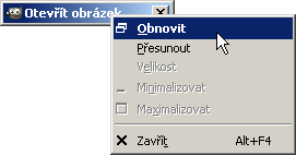 Jednoduše kliknu pravým myšidlem na tuto lištu a zvolím Obnovit a mám zpátky kompletní okno pro otvírání obrázků.