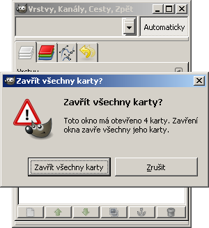 2. Zavření karty Vrstvy, Kanály, Cesty, ...