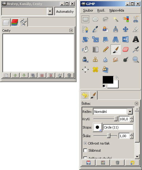 mám náhle místo těchto karet prázdný prostor a již neuvidím nastavení jednotlivých nástrojů (zde štětce)