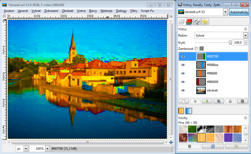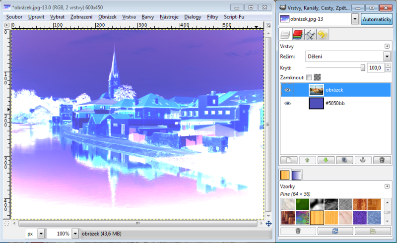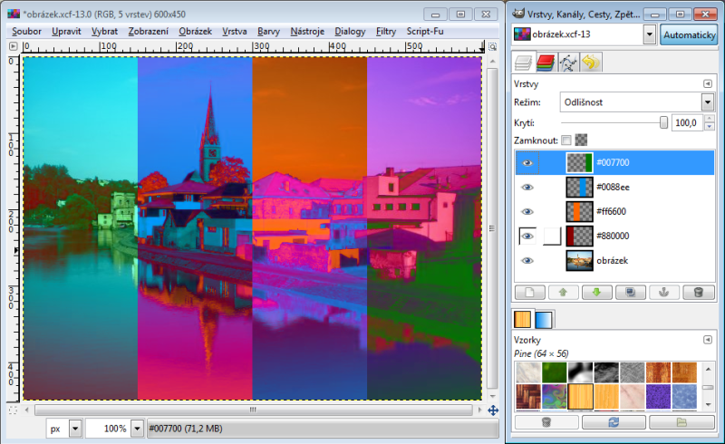 GIMP - aplikační možnosti - přehlídka režimů prolnutí