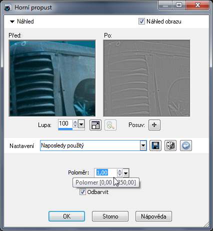 jezdcem nastavíme co nejmenší možnou hodnotu, tak aby byli vidět stále obrysy. a dáme ok.