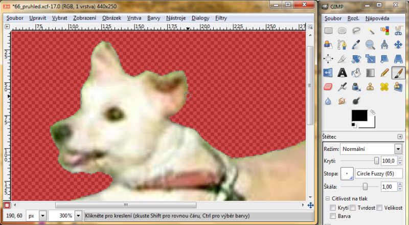 - protože moje ukázková animace začíná "zničehonic" a končí doztracena, je nutné počáteční a koncové obrázky pejska patřičně zmenšit, každý samozřejmě jinak
