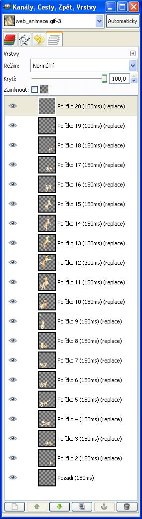 - každé políčko budoucí animace bude mít svou vlastní vrstvu
