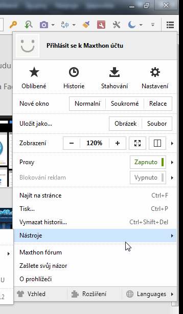 (chci plnohodnotné menu, lišty pod adresním řádkem, lištu s oblíbenými stránkami, statusbar)