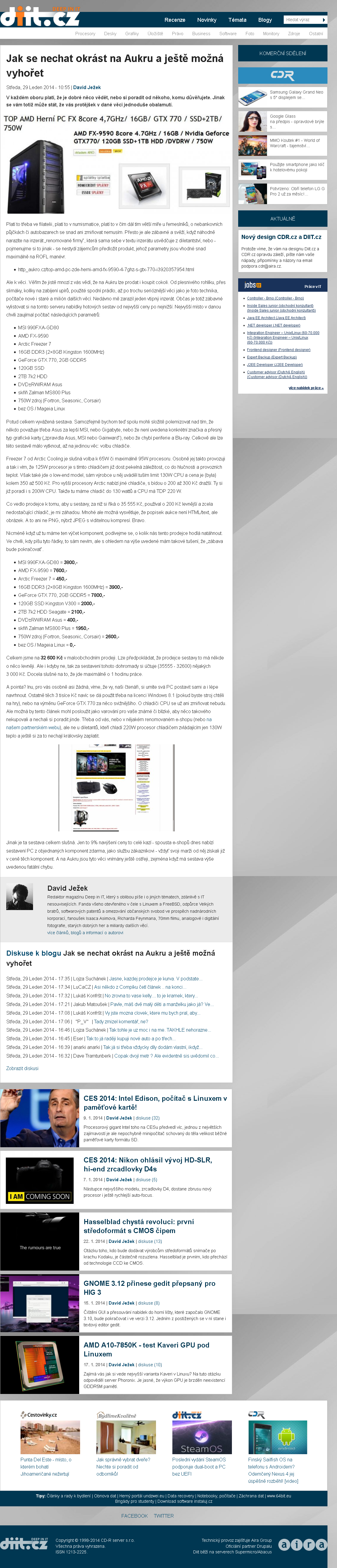aaale, clanek byl nejspis stazen, protoze Jezkovi uz zase hrabe a dela z nekoho kdo da do-jinak-budiz sestavy nevhodny chladic a ma na tom zisk o 9% vyssi nez je dle nej primerene pomaly zhare, zlodeje a div ne vraha. Priserne prehnana reakce na jednu chybu v konfiguraci (ten zbytek nebyl nejak vylozene nesmyslny) a o v radu procent vyssi cenu nez cena samotnych komponent v MO. Ja nevim, jde to s DIIT cim dal tim vic do ...
