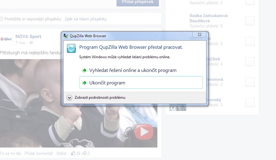 To nevím, co vám padlo, ale jednak tak tvrdé a perverzní porno jako je Ksichtokniha opravdu nemusím a jednak jsem zjistil, tak novější "verze" Adobe flash pluginu způsobuje pád (flash mám pochopitelně "na požádání"). Se starší to funguje normálně. to je ovšem problém Adobe.