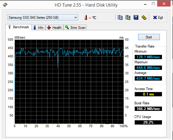 - Test byl proveden s HD Tune, Windows 8.1/64bit