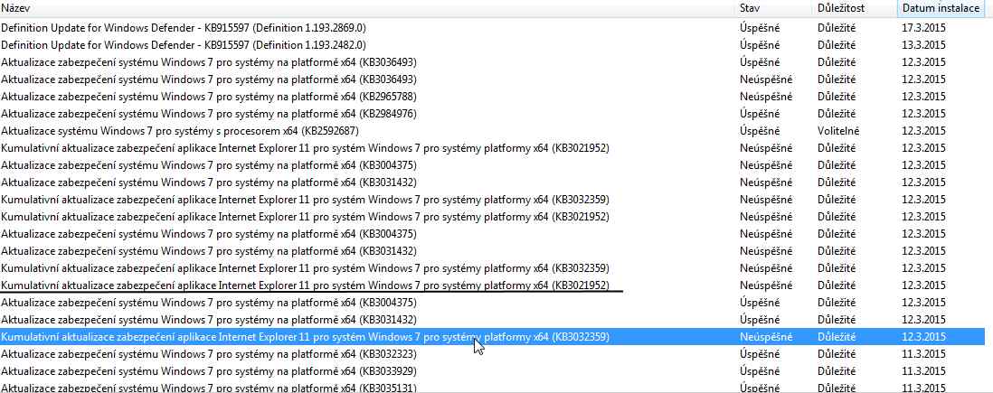blbla předešlá instalace update, ta problémová si po restartu dala říct.