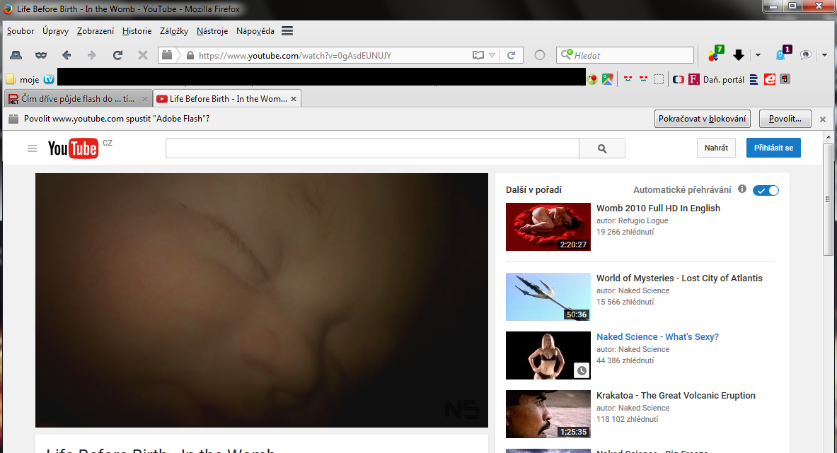 CTRL+R obnovim stranku a vyskoci hlaska, zda chci povolit na strance flash, kliknu na povolit a prehravam video.