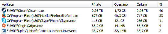 Díval jsem se do historie na svém PC (něco přes dva roky) a 300GB jsem jednou překročil (pochopitelné za situace, že jsem na novém PC instaloval knihovnu her ze Steamu (na PC mám stovky her). Statistika prvních pěti "nejžravějších" aplikaci: