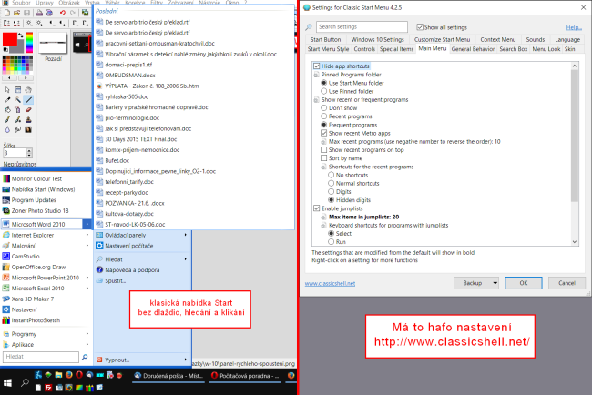 Akorát jsem si musel udělat klasickou nabídku Start a vyrobit panel rychlého spouštění, na který jsem zvyklý.