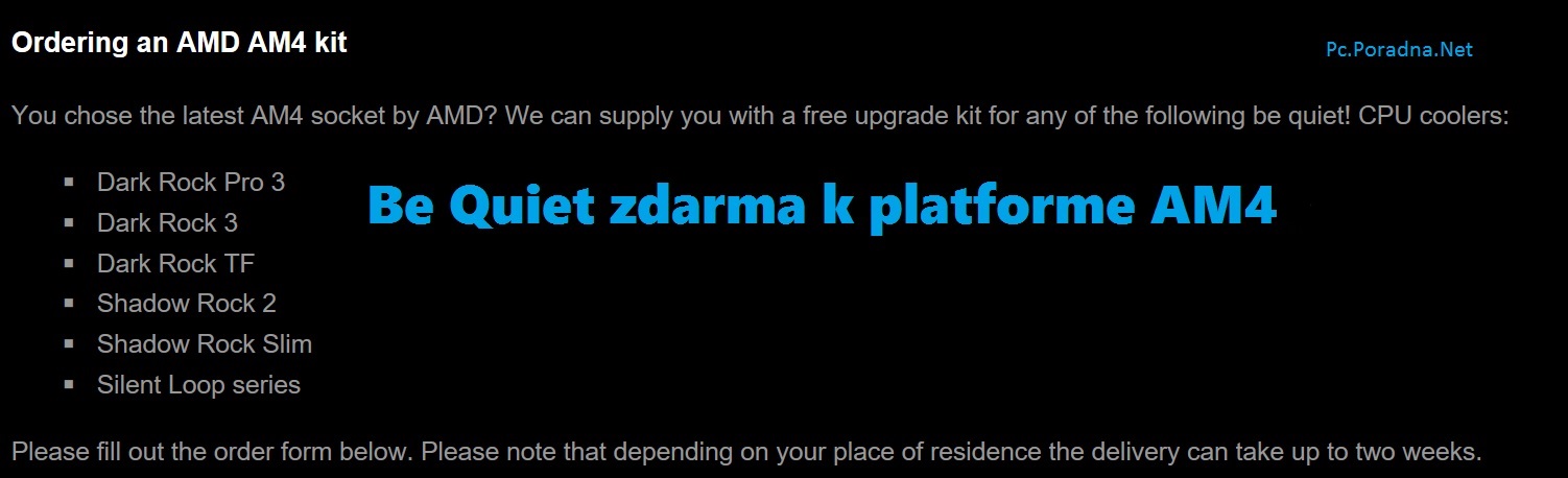 Vyuzijte dosti lákavé nabidky CPU Cooleru od znacky 'Be Quiet' zcela "Zdarma", ano Pánové, treba takový Dark Rock 3 PRO by vas k vasemu novému ZEN nepotesil ?