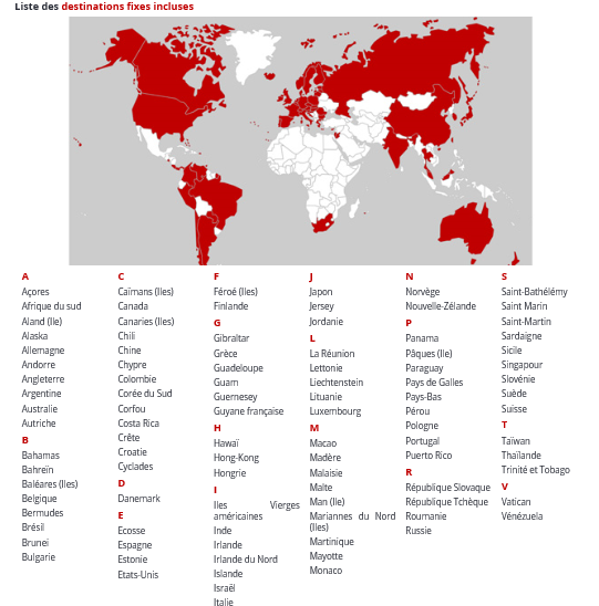 Zahrnute destinace uvedenych zemi :