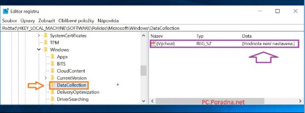 # Cemuz by odpovidala i hodnota registracniho klice [...\DataCollection]: