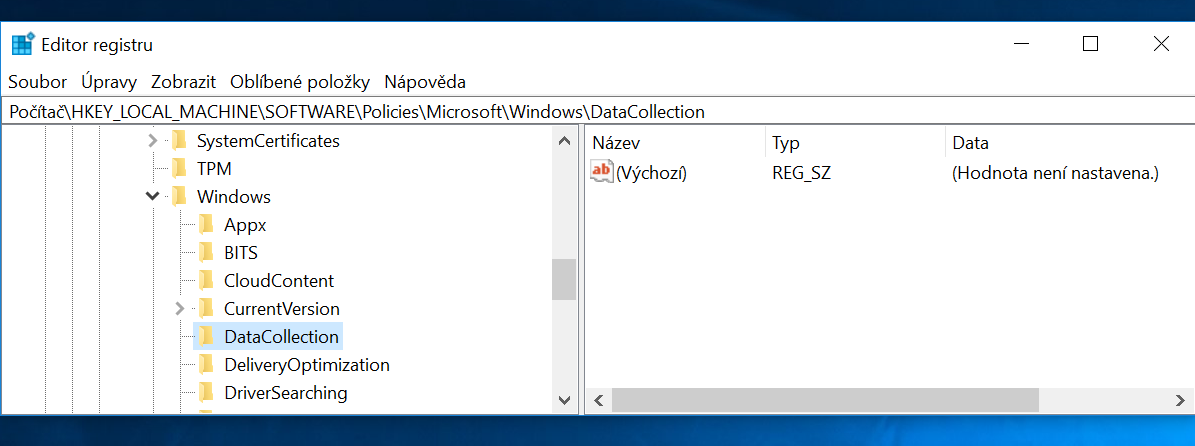 # Cemuz by odpovidala i hodnota registracniho klice [...\DataCollection]: