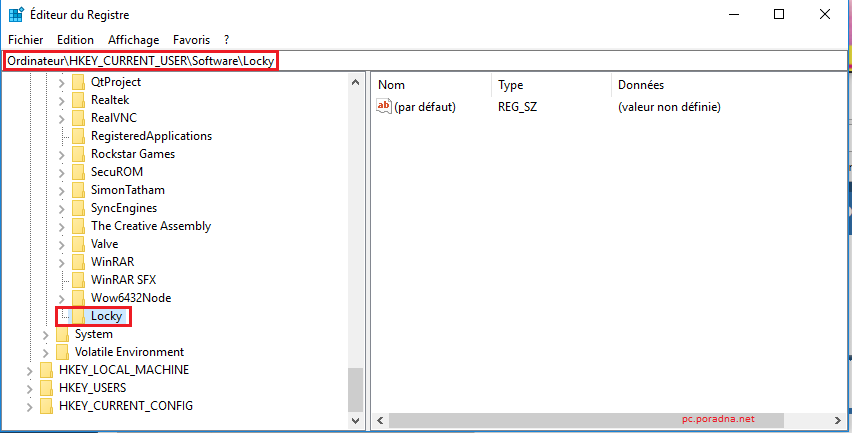 Jelikoz Locky v prvni kroku infekce (bez ohledu na puvod infekce at z mailu nebo od jinud), se snazi vytvorit registracni klic HKCU\Software\Locky , tak ho vytvorime pred nim a trochu mu to zneprijemnime !