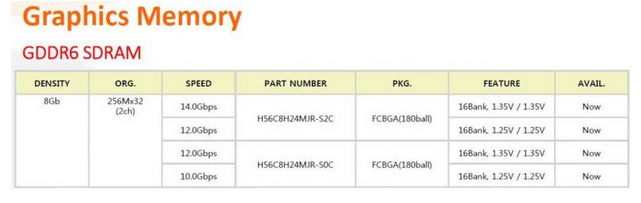 • I Grafické kart nejsou s novinky pozadu a muzeme v brzké obe cekat modely na nove pameti DDR6 (H56C8H24MJR-S2C) Hynix s rychlosti 14 a 12 Gbps respektivnim napajenim na "1.35" a "1.25V" .